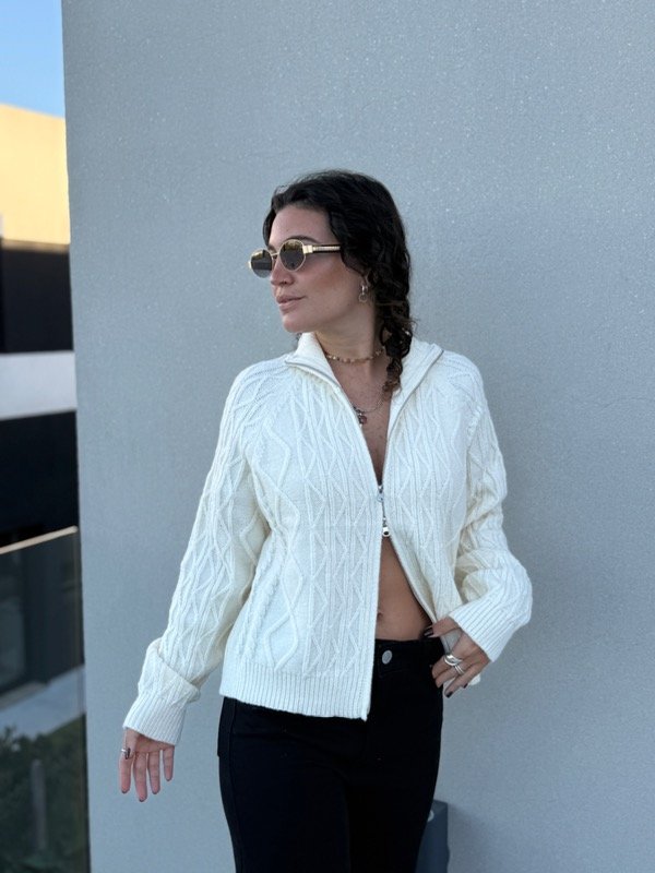 Cadigan de bremer grueso con doble cierre, se puede usar de varias formas y tiene abertura total