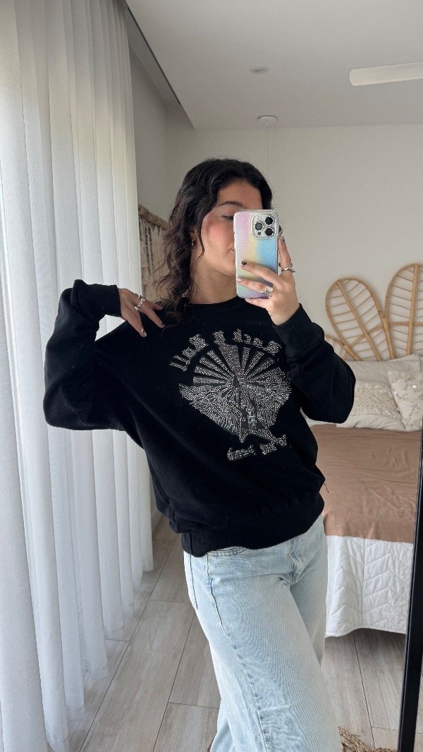 Buzo de St Marie con estampa de brillos en la parte delantera, sin frisa